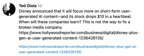 It’s hard to get heard online. It’s also hard to get heard in real life. Concert attendance is down. Festival attendance is down. Prices for many things are up. New music is struggling to clear a path through the swollen protuberances of now-corporate-owned legacy archives, as Ted Gioia has documented. You spend years building a following of people who asked to hear from you, only for the platform to throttle your posts so you have to pay for people to see it, the same ones who asked to see it.