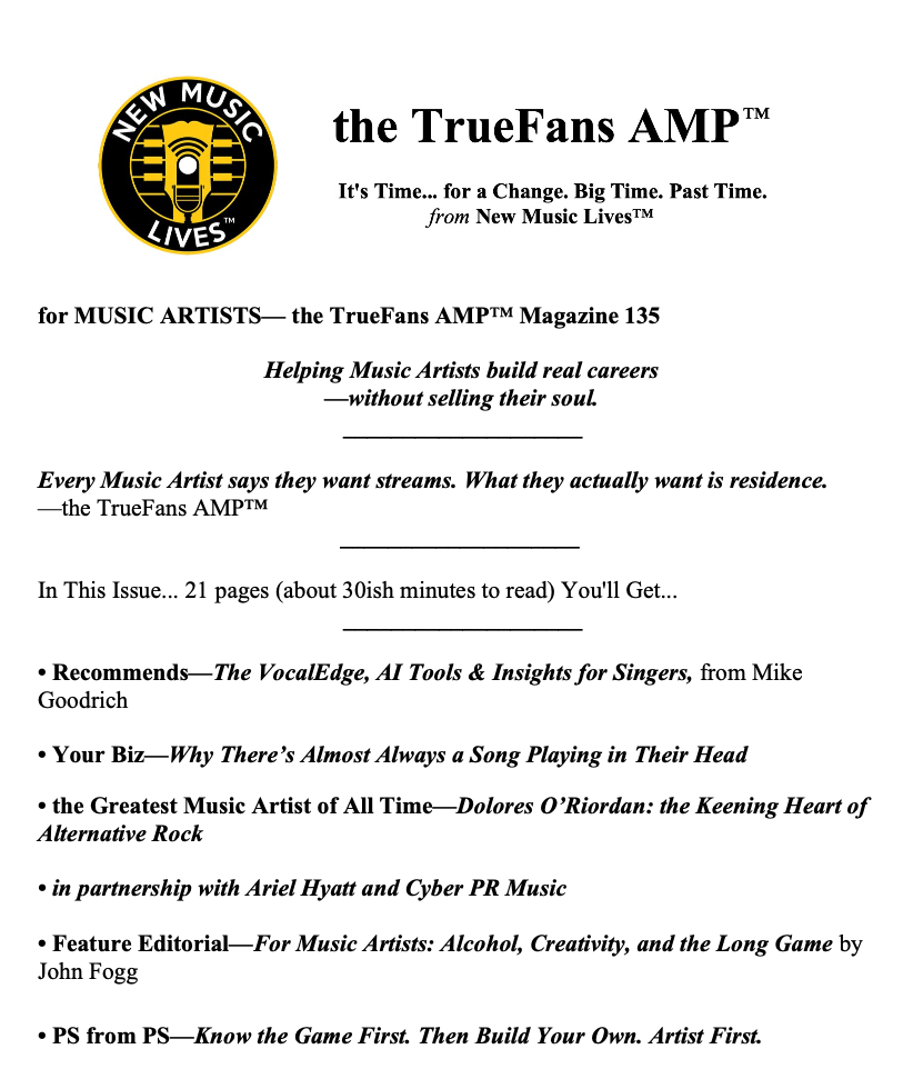 And PLEASE, if you've got any Music Artist friends, pass the TrueFans AMP™ on, because... It’s Time... for a Change. Big Time. Past Time...